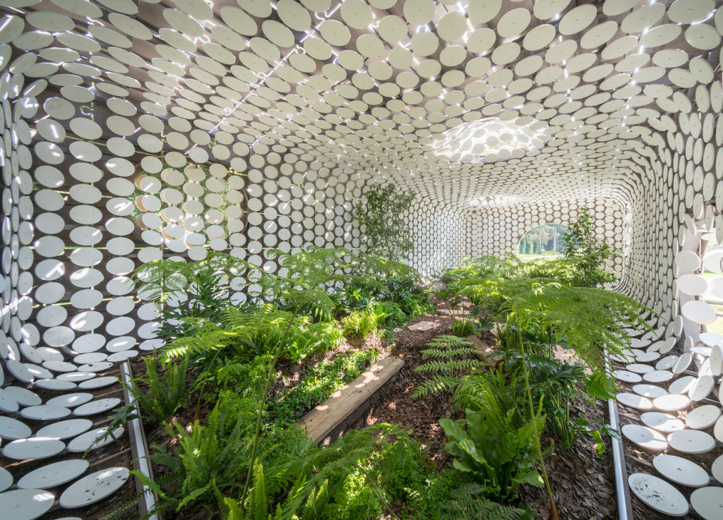 برای حفظ یک جنگل ابری کوچک در داخل ، اجازه ورود نور و باران به داخل فضا داده شده است .