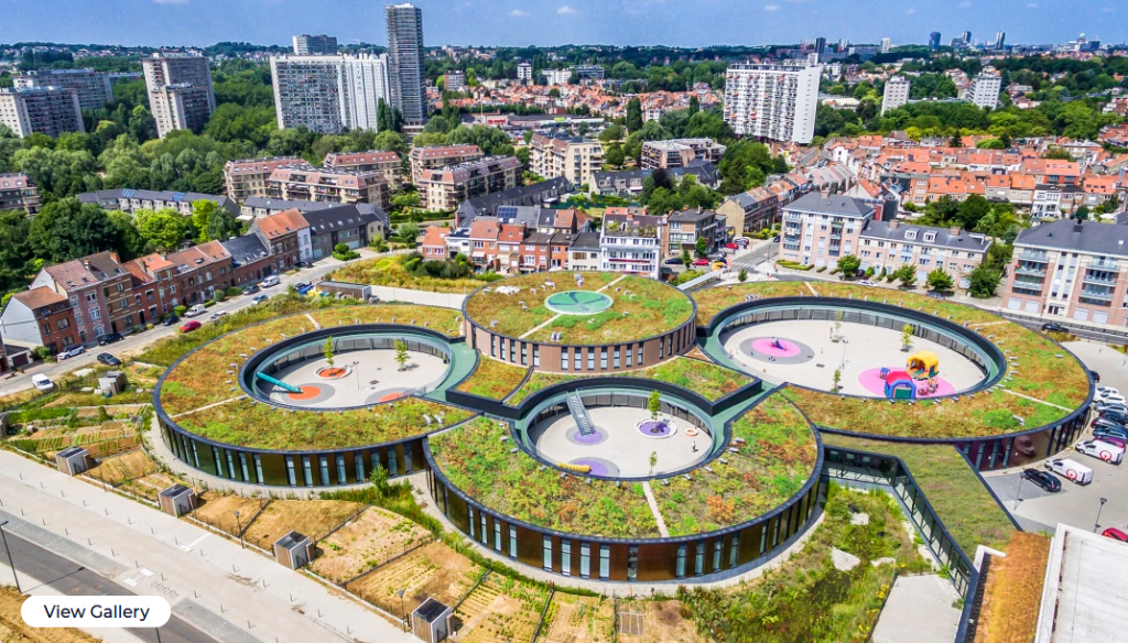 مدرسه ابتدایی باهوش ها Les Trèfles توسط گروه معماری Árter در سال 2016 در شهر Anderlecht مقرر شده است . در طراحی این مدرسه از اشکال دایره ای استفاده شده است که تحقیقات نشان می دهد که اشکال گرد باعث تحریک حرکت و تمرین و ورزش بدنی را حدود 20 درصد افزایش می دهد . قابل ذکر است که سبک پیچیده این اشکال روابط بین فردی را بهبود می بخشد. بام سبز این مدرسه زیبا به آب و هوای دلپذیر داخلی کمک می کند.