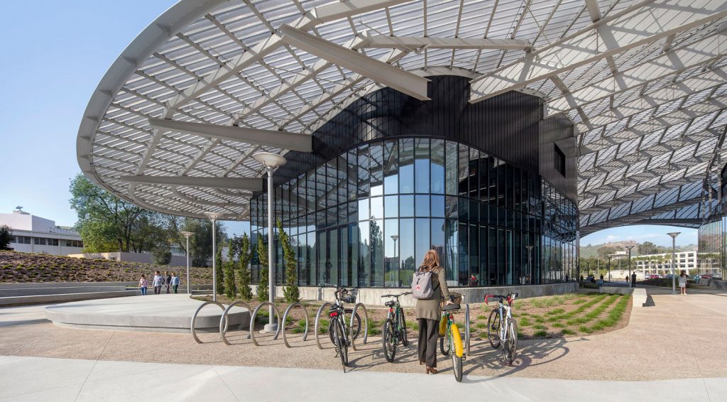 معماران CO این ساختمان را با طراحی سقف آلومینیومی درزدار و ایستاده SSB را در بالابه صورت دو سازه مجزا قرار دادند. این شکل و جهت گیری صرفاً به جهت بهینه سازی مدیریت انرژی صورت گرفته است ، به حداکثر رساندن نور روز و ارائه منظره به اطراف هدایت می شود.طرح سقف این ساختمان به توپوگرافی پردیس ، کوهپایه ها و کوه های سان گابریل مجاور اشاره می کند ، به گونه ای ساختمان را با کوه پیوند می دهد. این پروژه دارای گواهینامه LEED Platinum است.